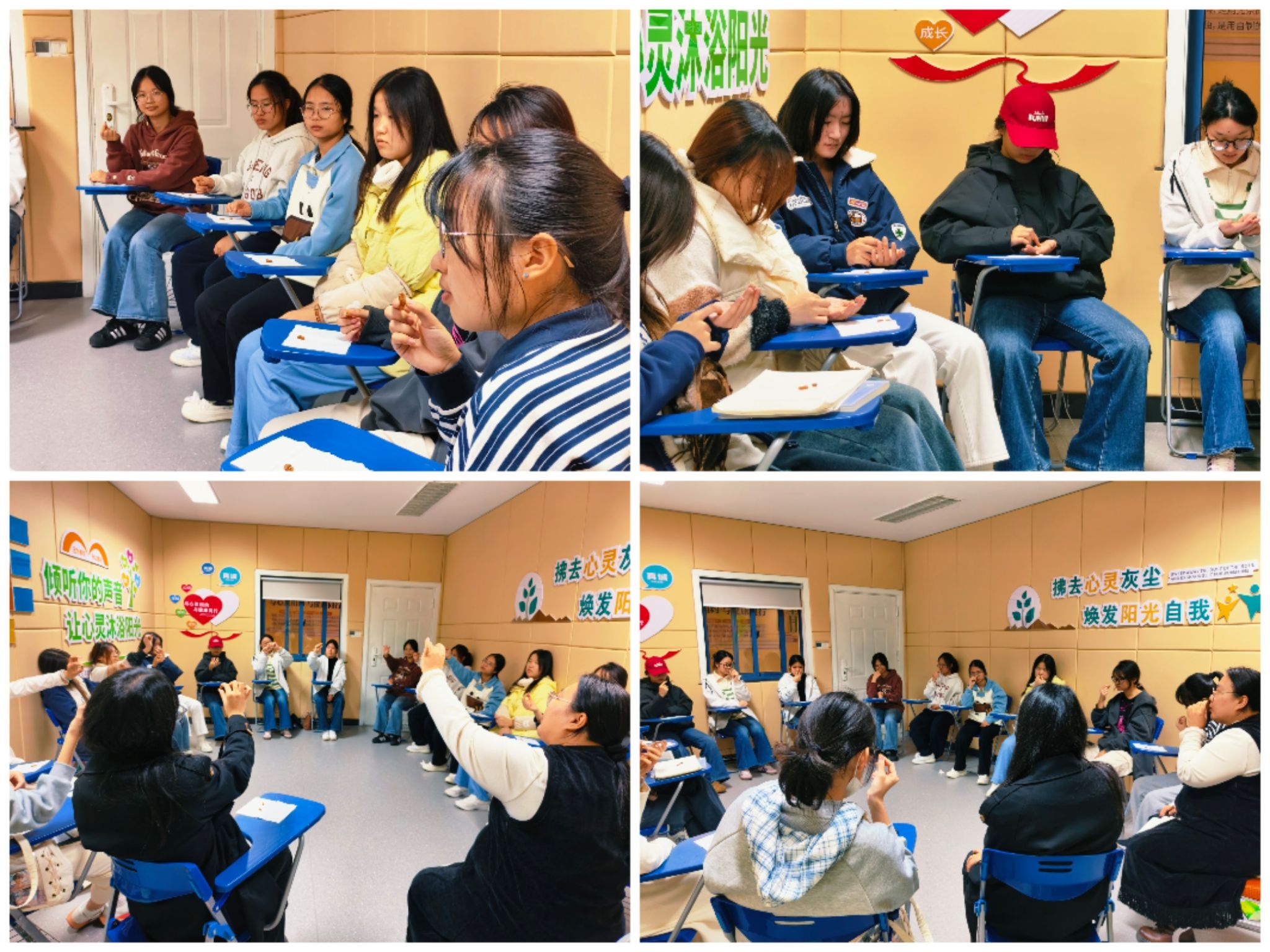 为缓解大学生学业压力,提升情绪管理与自我觉察能力,11 月 24 日,学工部心理健康教育指导中心在鄞州校区举办了一场别开生面的正念团体辅导活动。活动创新性地将系统正念觉察呼吸与趣味性的正念进食葡萄干相结合,为在场十五名学子带来了一场沉浸式的 “心灵瑜伽”,让大家在专注与平静中探索自我、释放压力。
