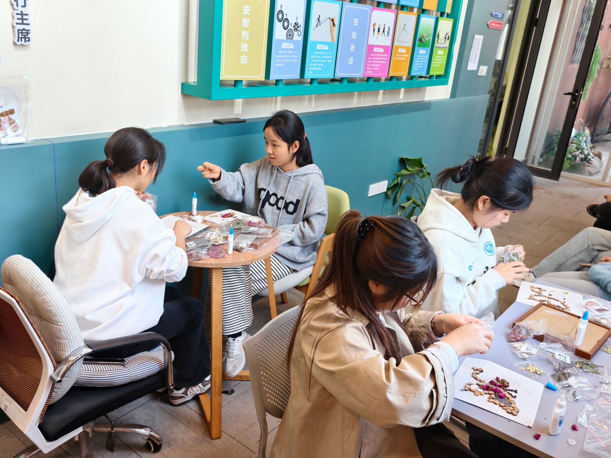 一缕药香,沁润心脾;一份专注,安顿身心。今天下午,奉化校区远志文化中心心理文化长廊内暖意融融、药香弥漫,学工部大学生心理健康教育指导中心(以下简称中心)精心打造的“心悦药香”轻疗愈手作工坊——中药相框团辅在此温情启幕。此次团辅活动是将心理健康教育与学校特色底蕴深度融合的一次生动实践,旨在为同学们开启一扇独具“浙药”辨识度的轻疗愈之门。