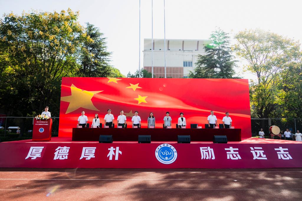 10月10日上午,浙江药科职业大学在鄞州校区田径场隆重举行2025级新生开学典礼。校党委书记阮叶萍、校长娄小娥等学校全体领导班子成员出席典礼。