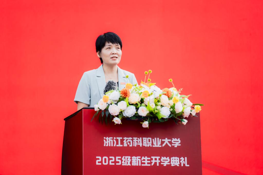 娄小娥寄语新生三点期许:一是格物致知,博观约取,做独立思考的浙药人。希望同学们有意识地在每一次实践中锤炼自己的思辨能力:养成主动“找问题”的习惯,善于驾驭“新工具”,坚守“向善”的伦理底线,始终服务于人的健康福祉。二是身体力行,知行合一,做脚踏实地的浙药人。首先,珍惜实践机会,练就过硬本领。职业教育的优势在于理论与实践紧密结合。希望同学们在动手操作中深化理解,在真刀真枪中掌握技能。其次,主动跨界融合,拓展能力边界。主动选修跨学科课程,参与跨专业项目,在实践中培养系统思维和协同能力。最后,深入产业一线,培育职业素养,在实践中培育精益求精的工匠精神和守正创新的职业品格。三是向内扎根,向上生长,做内心丰盈的浙药人。首先,在多元探索中找准赛道。学校支持每一种向上的成长路径,每个人都能拥抱属于自己的精彩。其次,在持之以恒中守护健康。成为健康的榜样,掌握终身受益的运动技能,做自己健康的“第一责任人”。最后,在自我觉察中修炼内心。学会为心灵“充电”,找到适合自己的压力释放方式,支撑同学们走得更远。