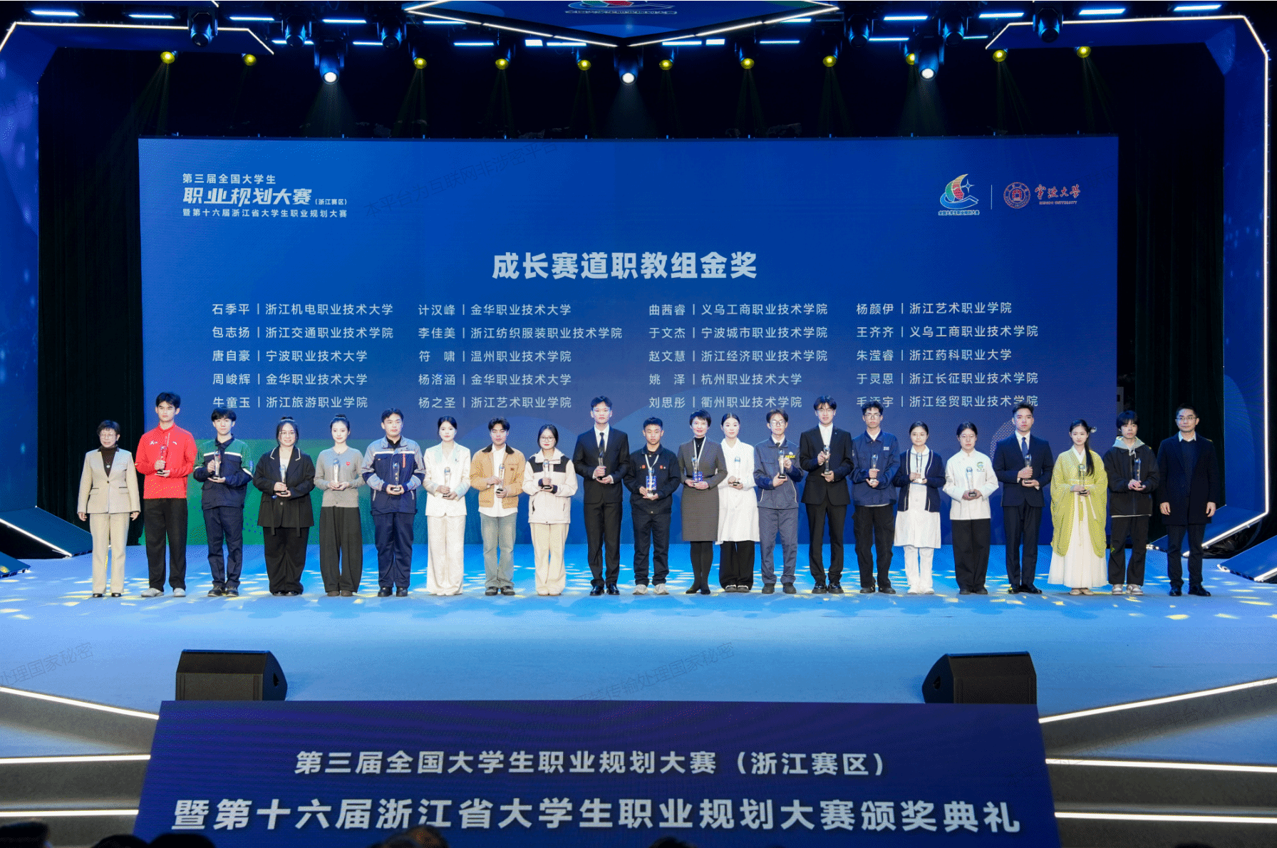 12月18-19日,第三届全国大学生职业规划大赛(浙江赛区)暨第十六届浙江省大学生职业规划大赛在宁波大学举行。我校参赛学生凭借出色的表现,一举斩获大赛金奖1项、铜奖4项、优秀奖4项,实现自2023年该赛事纳入国赛以来的省赛金奖三连冠,充分彰显了我校在推动学生职业发展、就业育人和高素质技能人才培养实践的扎实成效。